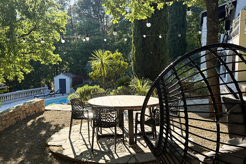 Detached villa near the charming village of Seillans. Grounds with various terraces. Nice pool house with fireplace.