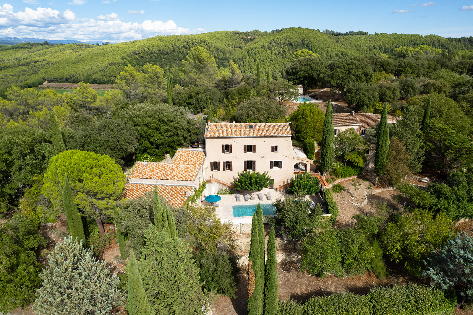 Detached villa near the charming village of Seillans. Grounds with various terraces. Nice pool house with fireplace.