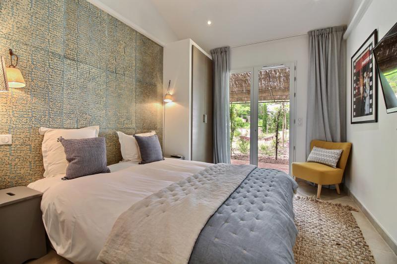 Bedroom 2, also on the ground floor, has a double bed (160x200) and overlooks the pool.