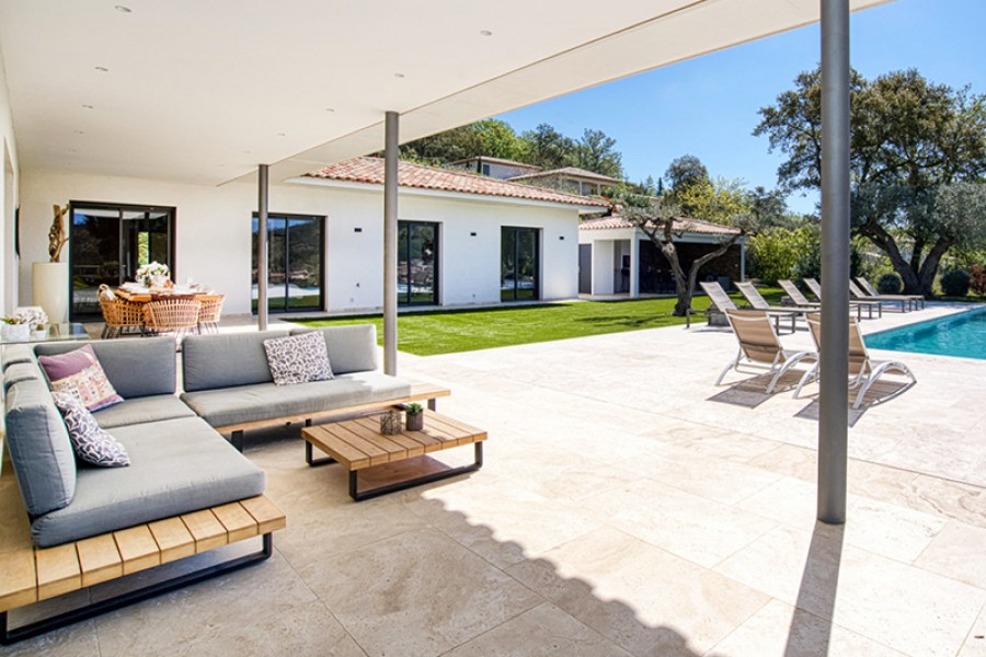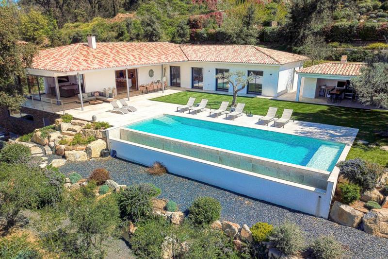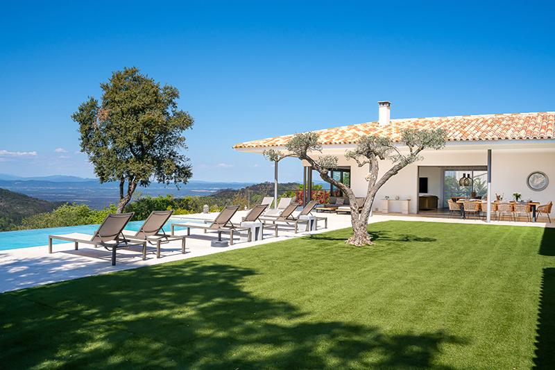 The villa is located a short distance from the charming Provençal village of La Garde-Freinet, known for its inviting terraces, small shops, and local market. The surrounding nature is perfect for beautiful hikes and challenging mountain bike rides through green hills and forests.