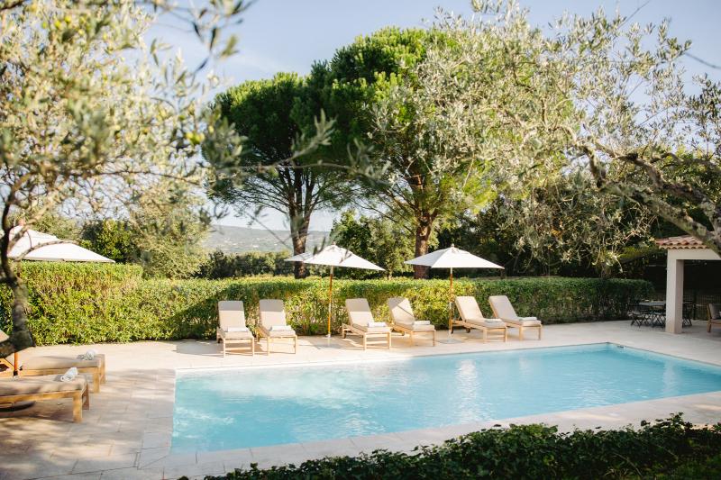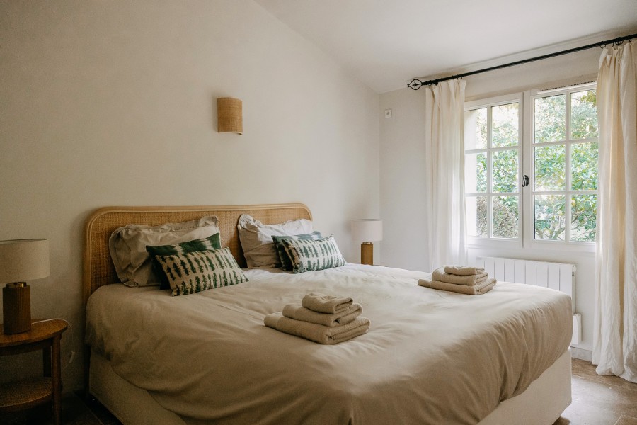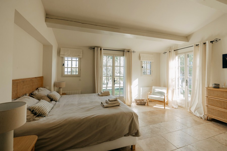The villa accommodates eight guests in four bedrooms and three bathrooms, all located on the ground floor. All bedrooms are air-conditioned for optimal comfort.