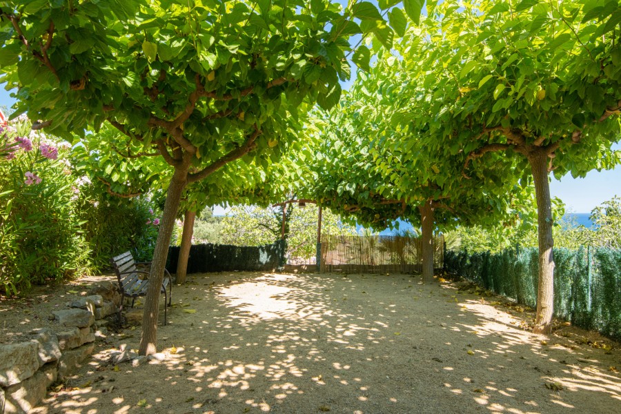 The open kitchen is equipped with all conveniences such as a double oven, electric cooktop, microwave, Nespresso machine, and a large fridge-freezer with an ice maker and provides access to the covered terrace with a spacious dining table.It seamlessly connects to the covered terrace, where a generously sized dining table awaits, perfect for enjoying meals while taking in the surrounding views.