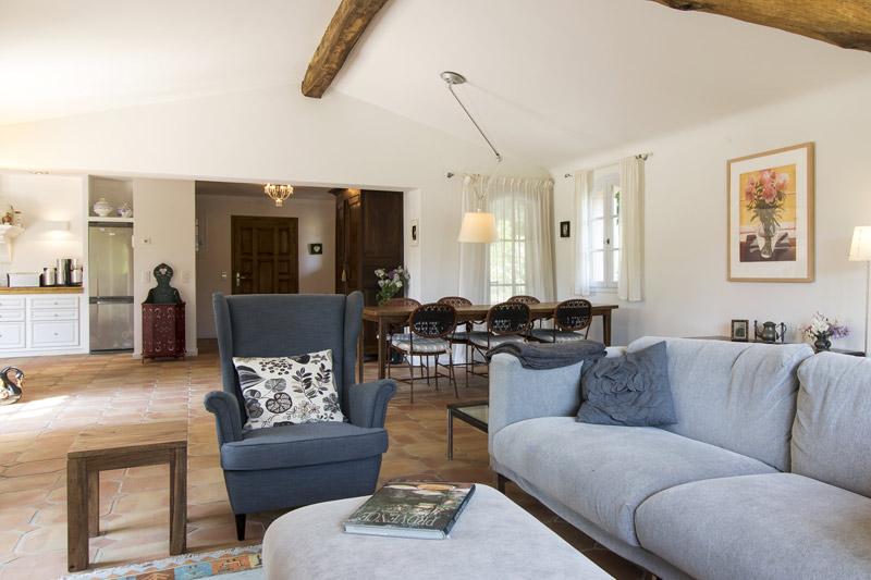 The Bastide is situated in the middle of a beautiful enclosed garden where greenery and trees provide a pleasant rural atmosphere. During the summer you can relax on the terrace or by the pool house. The terrace at the villa is "covered" thanks to the sycamores. There is a dining table for six, a lovely place to sit in the sun and enjoy...