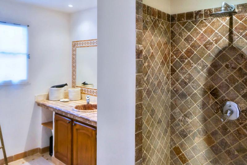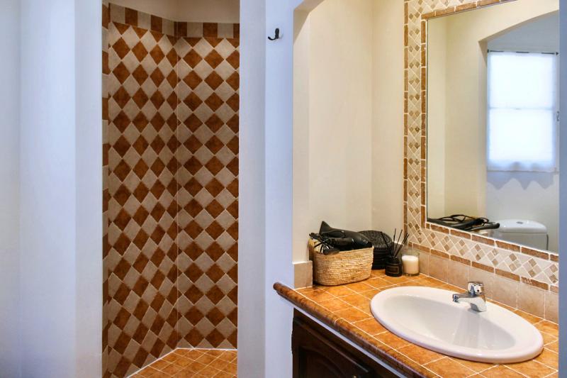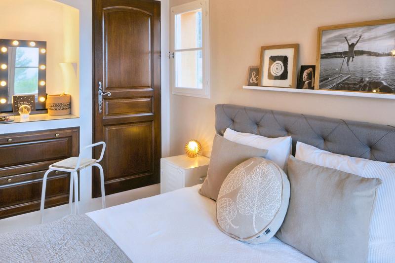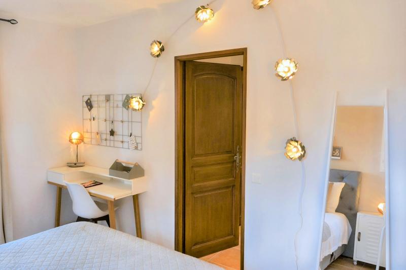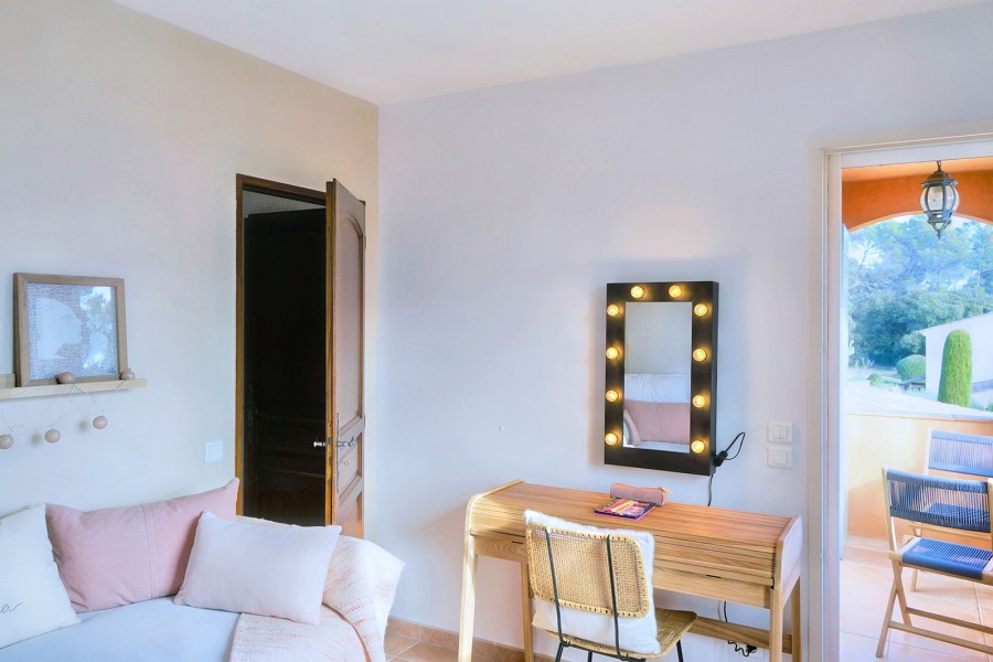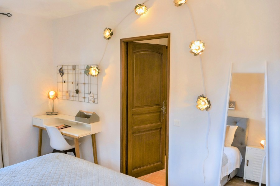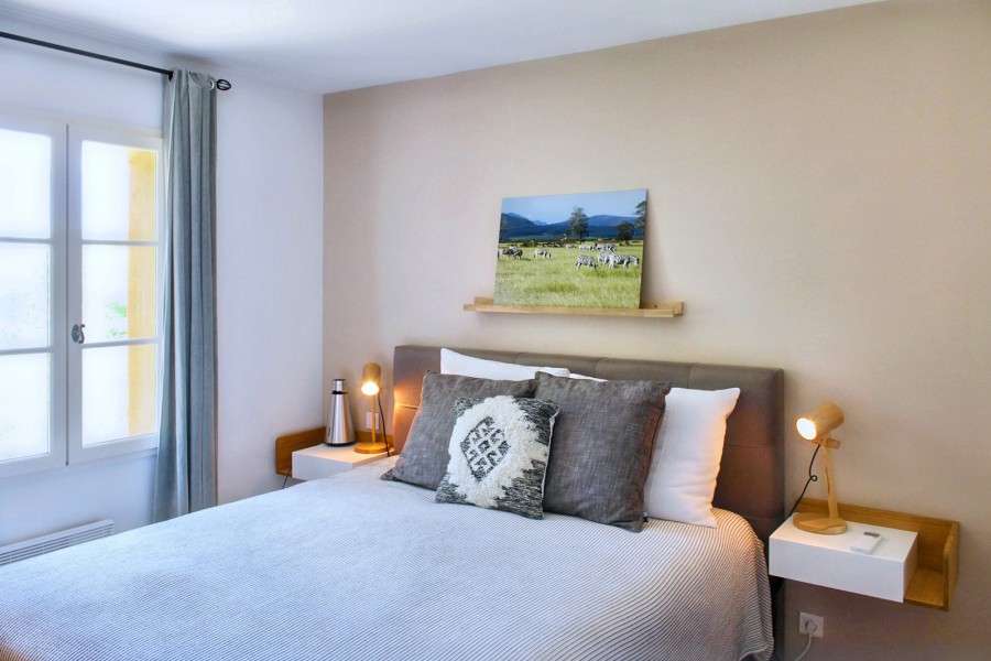 Bedroom 2 is on the first floor and has a double bed (160x200). It shares a bathroom (shower, washbasin and toilet) with Bedroom 3. Air conditioning is available.