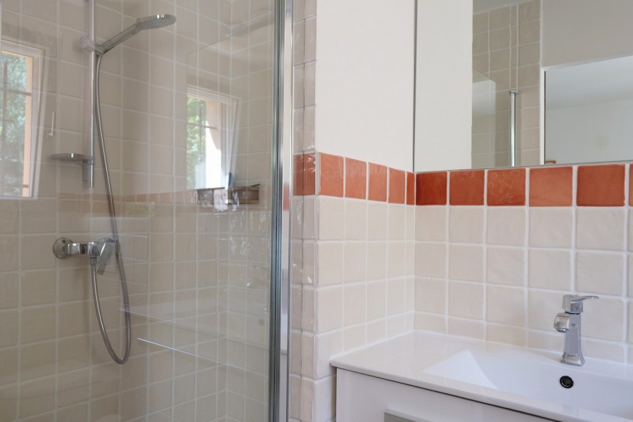 Bedroom 3 (first floor) – Also with a double bed (180x200). The en-suite bathroom offers a shower, washbasin and toilet.
