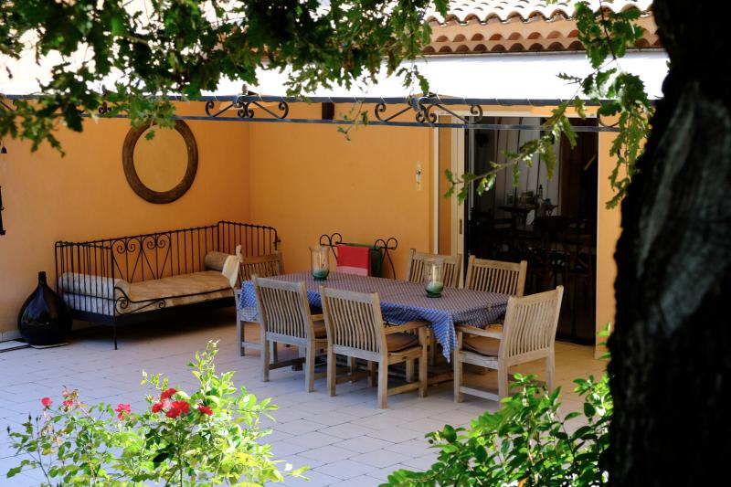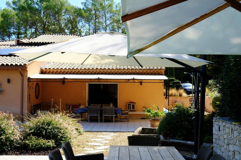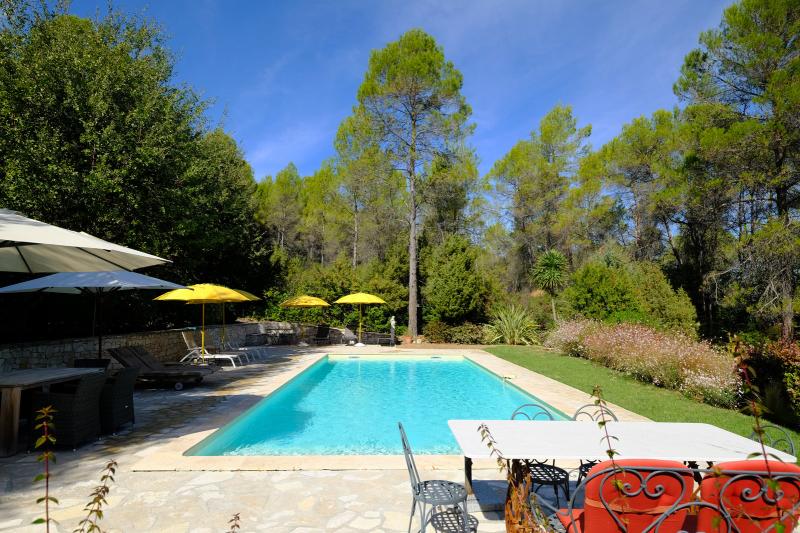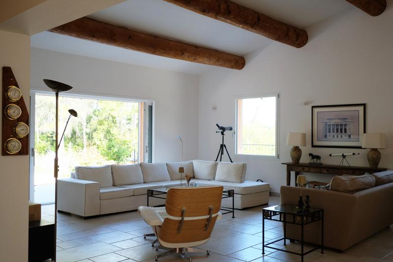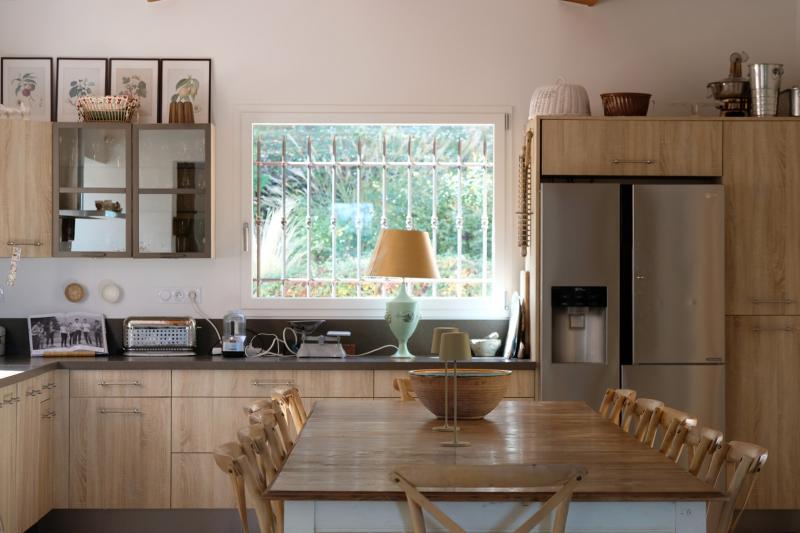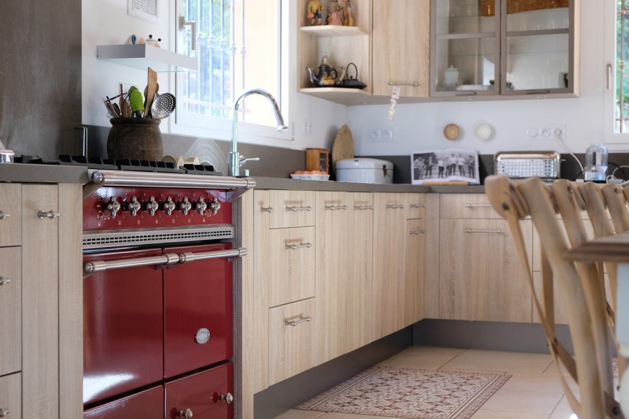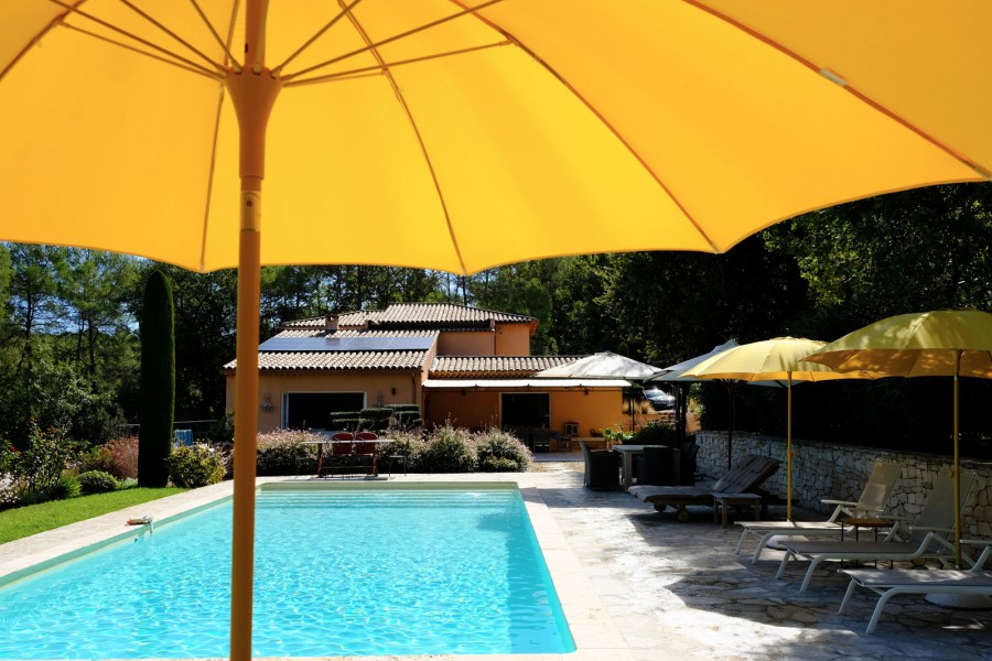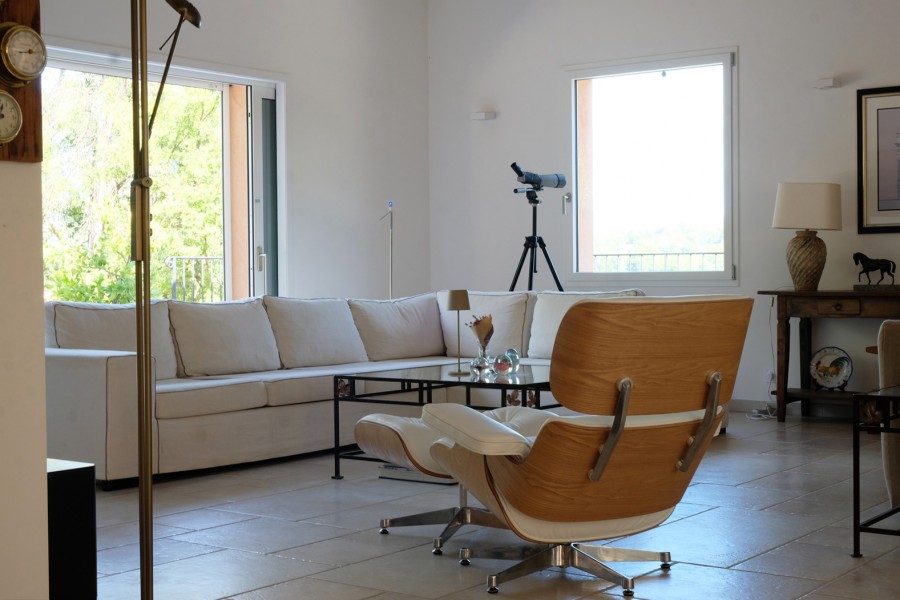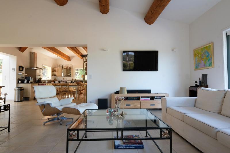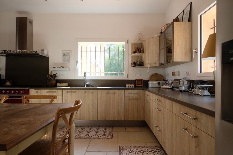 The interior is elegant and inviting, with the spacious kitchen forming the heart of the home. Flowing seamlessly from here is the cosy living area with several comfortable sofas – the perfect spot to unwind together after a day in Provence. Thanks to the high-speed fibre-optic internet, the villa is also ideal for guests who wish to work remotely during their stay.