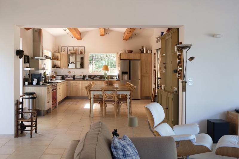 The interior is elegant and inviting, with the spacious kitchen forming the heart of the home. Flowing seamlessly from here is the cosy living area with several comfortable sofas – the perfect spot to unwind together after a day in Provence. Thanks to...