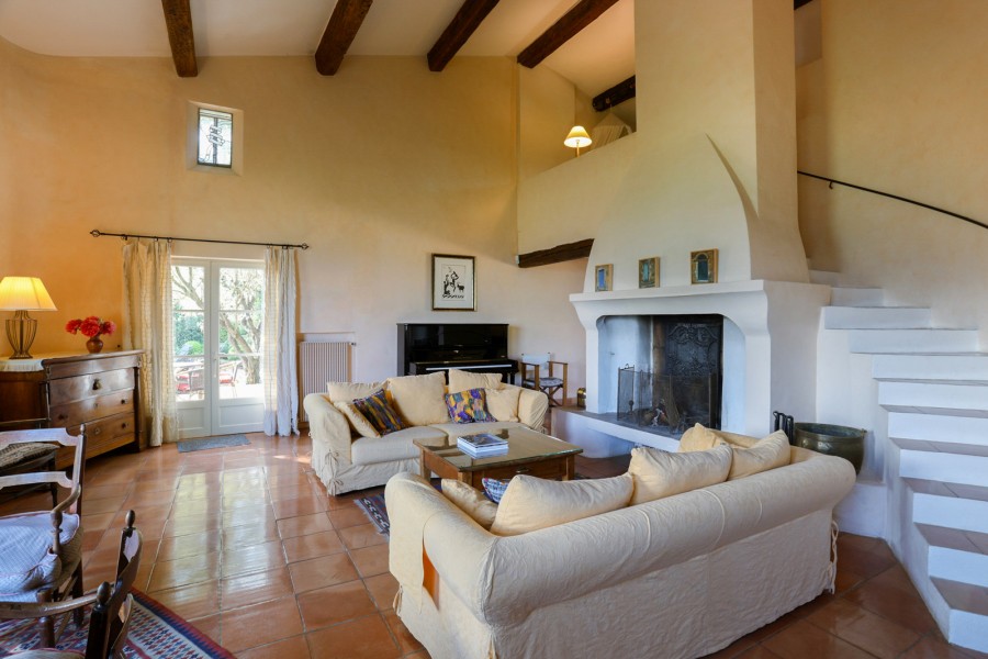 The house of traditional country charm is ~200m² spacious and attractively decorated in retro style. The walls are painted in Mediterranean style, in various shades of the local ocher. The lounge with 6m high beam ceilings is centered around a huge open fireplace, in front of which two sofas and antique furniture invite you to relax. A...