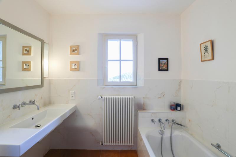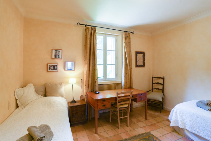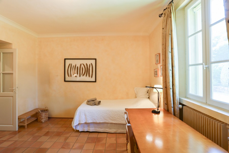 The Mezzanine Bedroom is equipped with an air conditioner. Thanks to its construction and location on the flank of the Luberon Hills, which has mild night temperatures in summer, the rest of the house maintains normally agreeable temperatures throughout the summer. The laundry room with Miele washer and dryer is located on the ground floor.