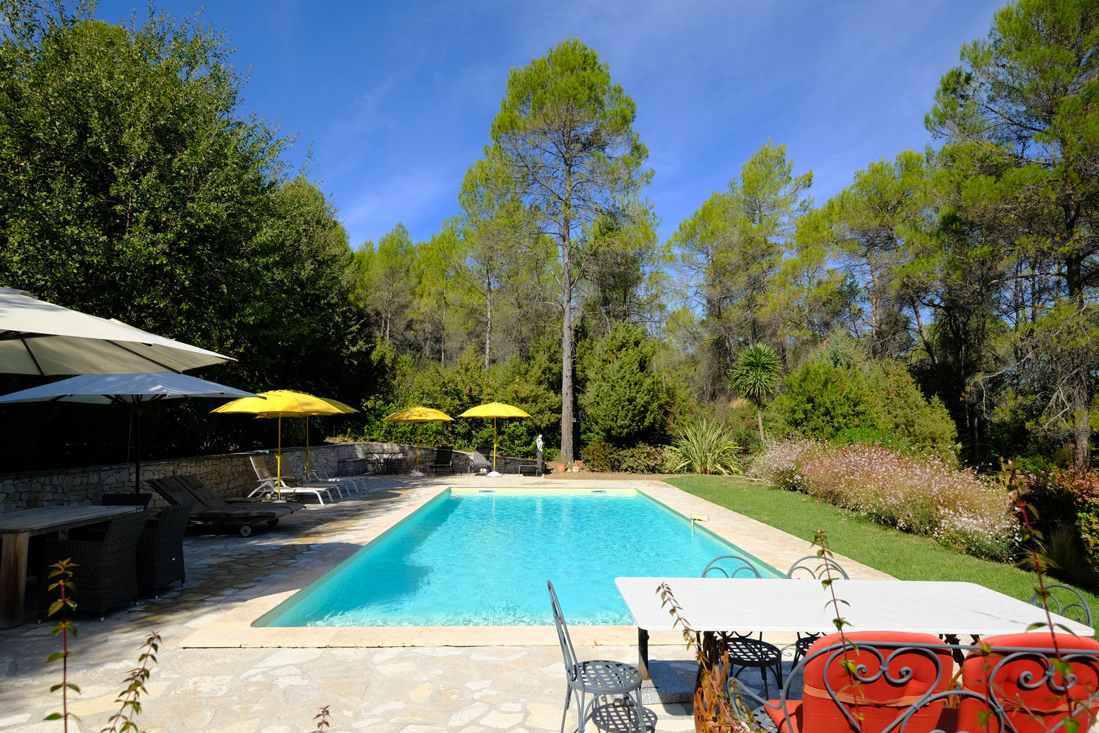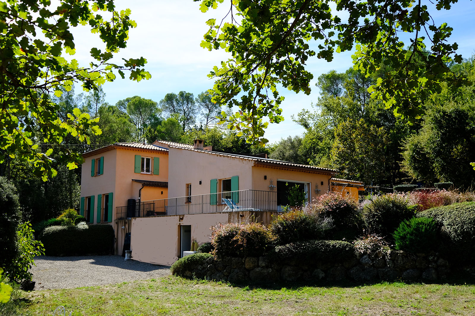 Detached villa near the charming village of Seillans. Grounds with various terraces. Nice pool house with fireplace.