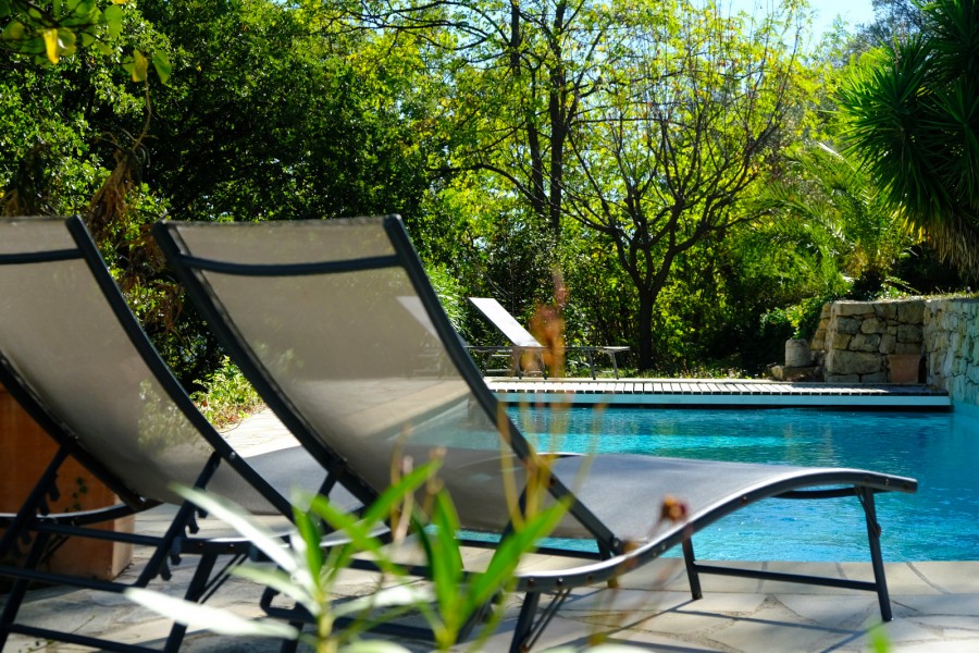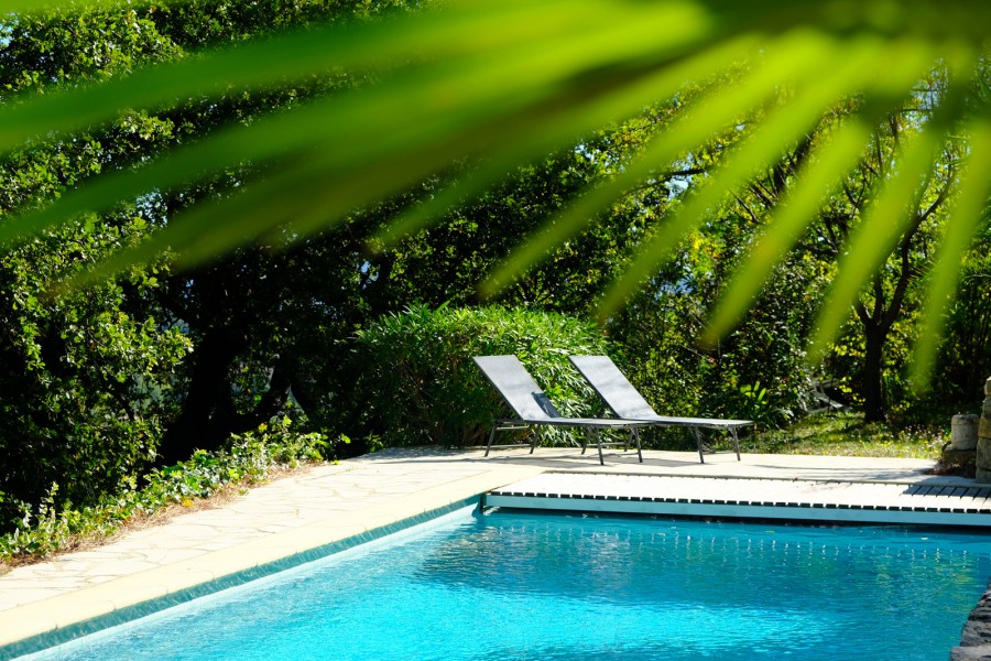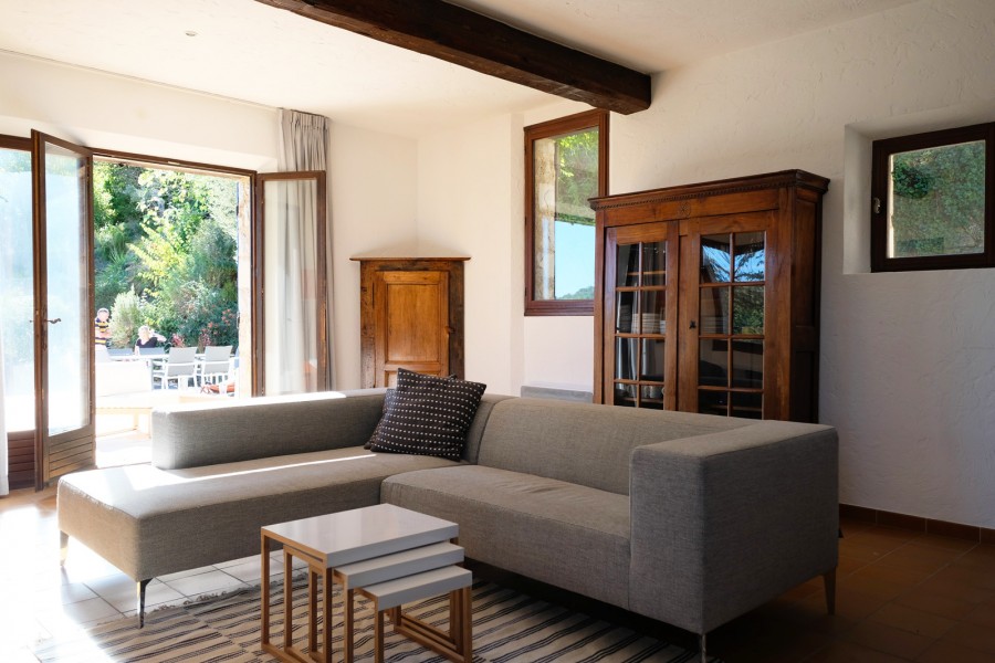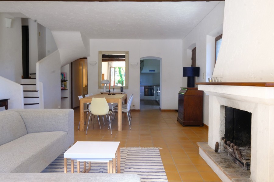 You enter the charming living room on the ground floor, with the spacious kitchen-diner on the right and - to the left, extending from the living area - access to the terrace and swimming pool.